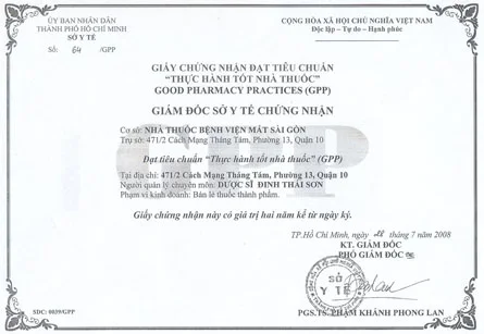 Bệnh viện Mắt Sài Gòn đạt tiêu chuẩn về “Thực hành tốt nhà thuốc – GPP”