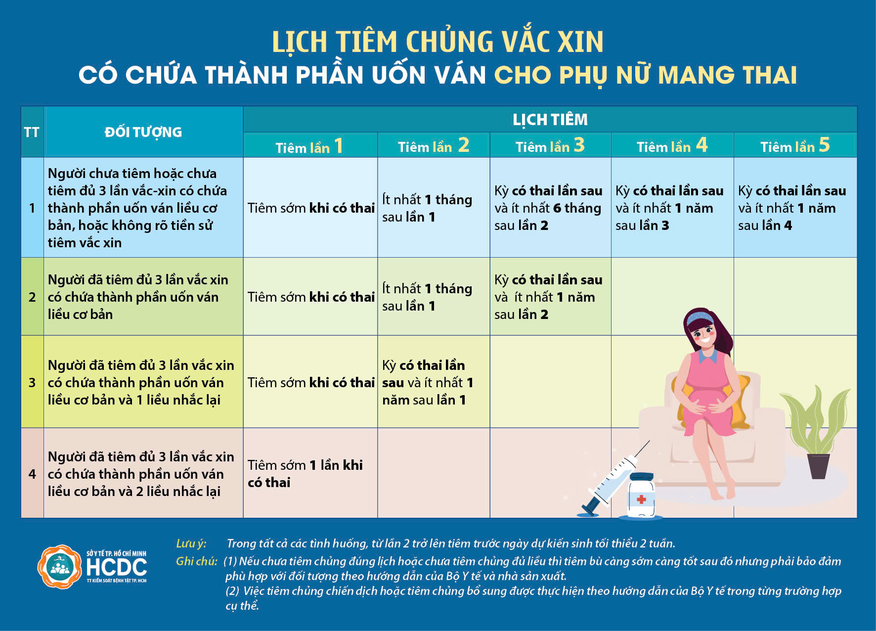 Lịch tiêm chủng vắc xin có chứa thành phần uốn ván cho phụ nữ mang thai